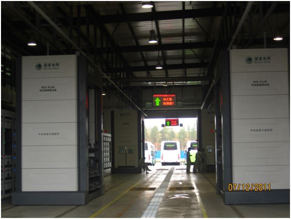 南京南河風光帶內(nèi)的南河充換電站于2013年正式完成建設,全車電池更換時間約6至8分鐘,每天換電服務能力為72車次,可滿足30輛純電動公交車換電需求。